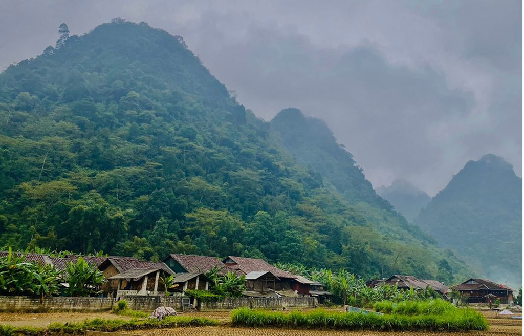 Nếp nhà mái ngói nông thôn tại làng du lịch Phja Thắp - Điểm di sản Công viên địa chất toàn cầu Non nước Cao Bằng