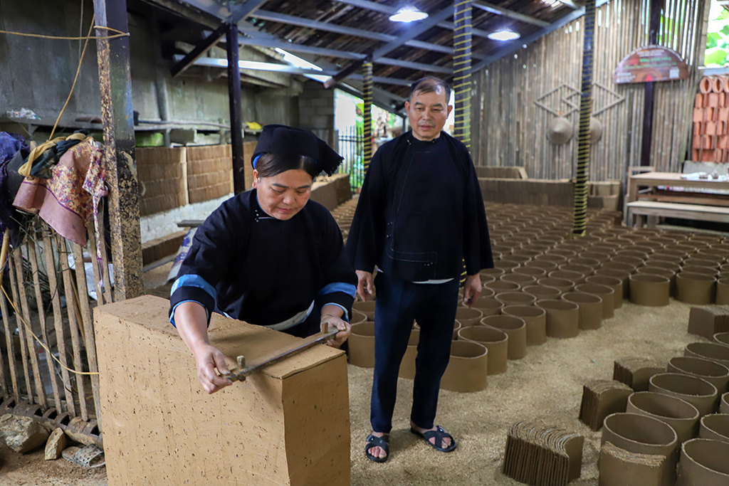 Người dân tộc Nùng xóm Lũng Rì, xã Hạnh Phúc vẫn kiên trì giữ nghề làm ngói máng, cần mẫn ngày ngày nhào đất, nung lửa. Với họ, mỗi viên ngói là kết tinh của đất trời, của công sức lao động và là niềm tự hào về bản sắc dân tộc. Hàng ngày, họ vẫn đều đặn góp phần tạo ra những viên ngói đỏ nâu, xếp lớp đều đặn trên những nếp nhà sàn hay nhà truyền thống, không chỉ che chở cho con người trước nắng mưa mà còn mang trong mình giá trị văn hóa, ký ức và hơi thở của quê hương. Hình ảnh những mái ngói phủ rêu, vươn mình giữa làn khói lam chiều bay lên từ bếp nhỏ, gợi nhớ về một miền quê nông thôn thuần Việt, yên bình và ấm áp. Những ngôi nhà này vào mùa đông giúp giữ hơi ấm cho căn nhà, còn khi hè đến, lớp ngói đất nung tự nhiên lại mang đến cảm giác mát mẻ, dễ chịu cho gia chủ và du khách ghé thăm. Ngói âm dương của người Nùng được làm hoàn toàn từ đất sét tốt, được nhào nặn thủ công, phơi khô và nung trong lò nhiều ngày đêm. Quy trình làm ngói đòi hỏi sự tỉ mỉ, khéo léo và kinh nghiệm lâu năm. Đây là điểm đến du khách có thể trực tiếp tham gia trải nghiệm làm ngói cùng người dân bản địa - một trải nghiệm mộc mạc mà đáng nhớ nên thử trong hành trình đến với Non nước Cao Bằng.