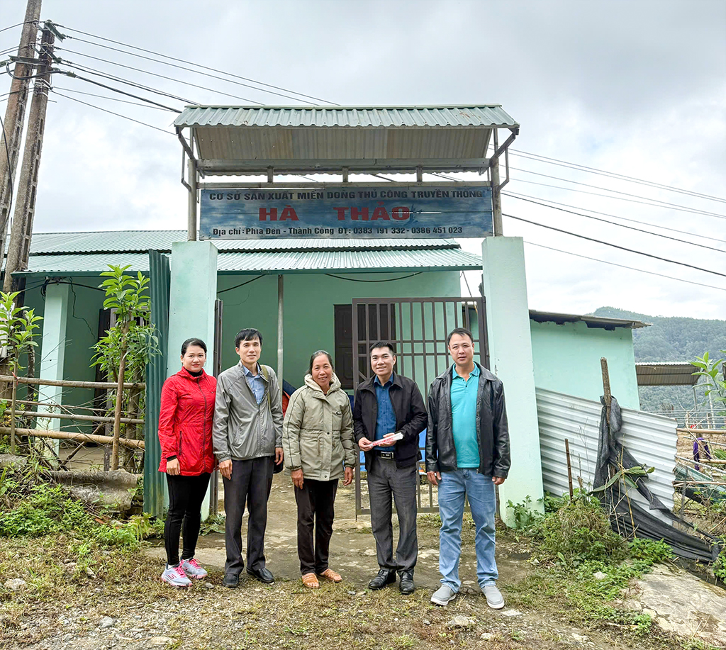 Đoàn khảo sát tại cơ sở sản xuất miến dong truyền thống Hà Thảo, xã Thành Công.