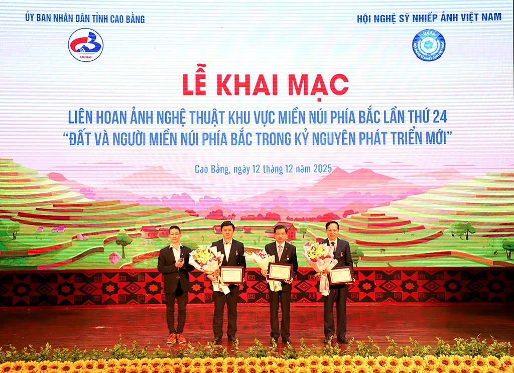 Hội Nghệ sĩ Nhiếp ảnh Việt Nam trao Kỷ niệm chương “Vì sự nghiệp phát triển triển Nghệ thuật Nhiếp ảnh Việt Nam” cho 3 cá nhân tại Cao Bằng.