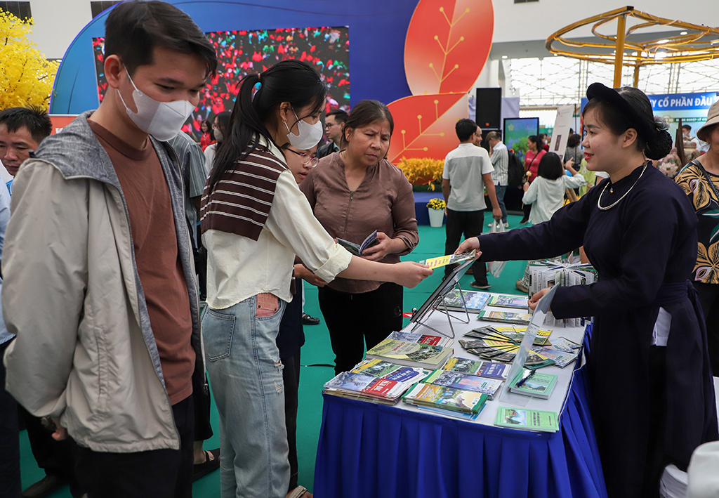 Du khách tham quan tìm hiểu các ấn phẩm quảng bá du lịch Cao Bằng