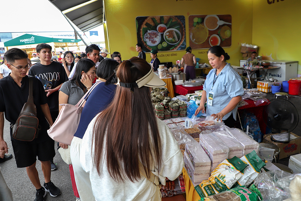 Gian hàng ẩm thực món ngon miền Non nước Cao Bằng tại không gian Lễ hội ẩm thực Thu Mỹ vị, trình diễn chế biến, giới thiệu món bánh cuốn; trình diễn chế biến, giới thiệu và bán sản phẩm thạch trắng (mác púp), thạch Đen; giới thiệu quả dẻ, hạt dẻ Trùng Khánh, các sản phẩm OCOP và các đặc sản đặc trưng của Cao Bằng.