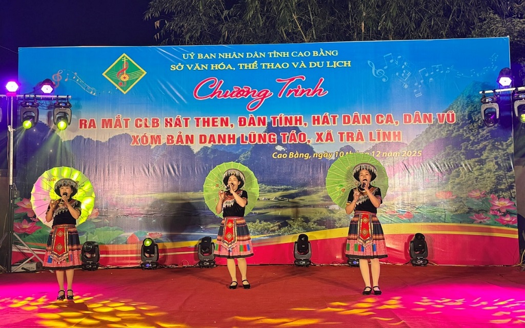 Thực hiện Dự án 6 “Bảo tồn, phát huy giá trị văn hóa truyền thống tốt đẹp của các dân tộc thiểu số gắn với phát triển du lịch” trong Chương trình mục tiêu quốc gia phát triển kinh tế - xã hội vùng đồng bào dân tộc thiểu số và miền núi, Trung tâm Văn hóa và Thông tin du lịch đã ban hành kế hoạch, xây dựng mô hình CLB hát Then, đàn Tính, hát dân ca xóm Bản Danh Lũng Táo, xã Trà Lĩnh. CLB hiện có 20 thành viên, là các nghệ nhân dân gian, hạt nhân văn nghệ, người có năng khiếu, đam mê hát dân ca đang sinh sống tại địa phương.